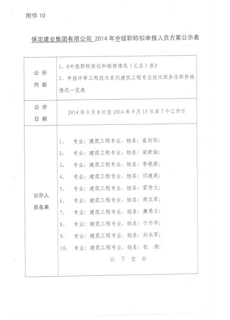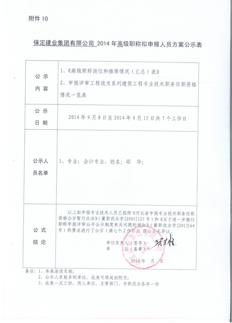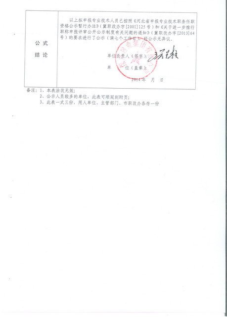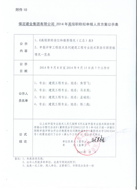 集團(tuán)2014年高/中級職稱申報人員公示